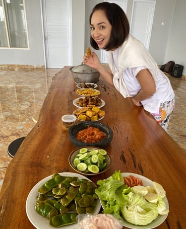 Yang begini ini yang gawat, makanan semeja enak semua! Meski cuman dua malam nginap di Bukit Makadamia di Desa Mekarluyu, makanannya itu lhoo tak terlupakan! Nasi liwetnya duh.. sadis! Endulitas!